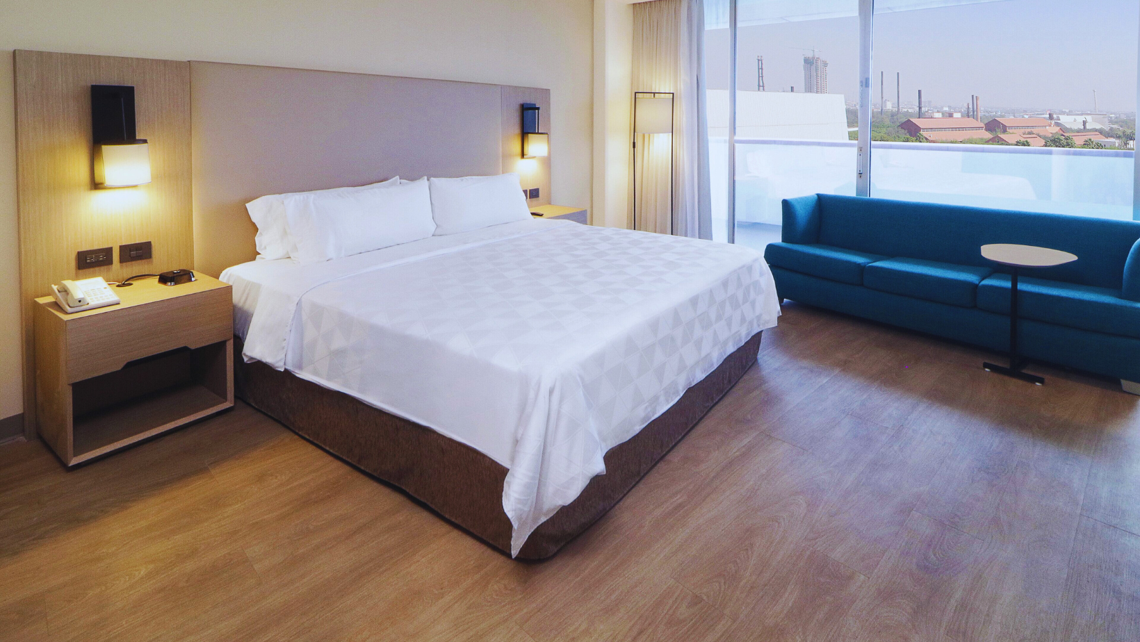 Las 246 habitaciones del hotel están diseñadas para ofrecer un descanso óptimo. Cada una incluye aire acondicionado, wifi gratuito, áreas de descanso independientes, y camas confortables con edredones de alta calidad. Además, las habitaciones cuentan con sofás cama, televisiones de pantalla plana con canales premium, y baños privados con amenidades gratuitas. Los huéspedes también pueden disfrutar de servicio a la habitación las 24 horas y acceso a camas infantiles o extras sin costo adicional.