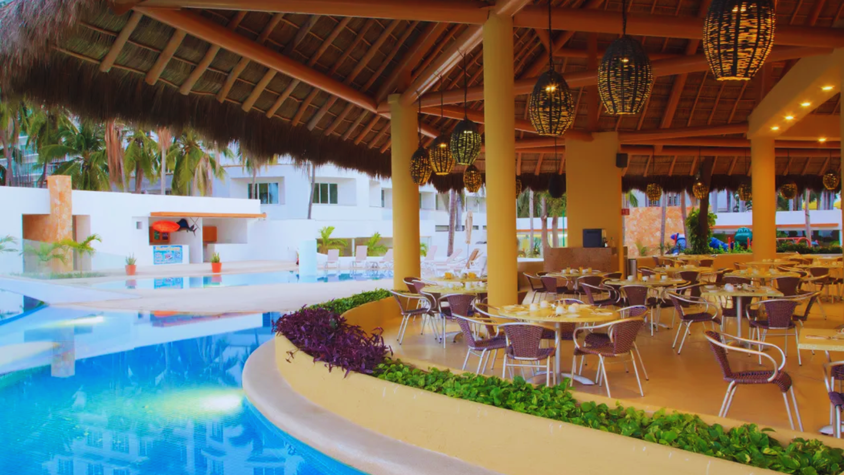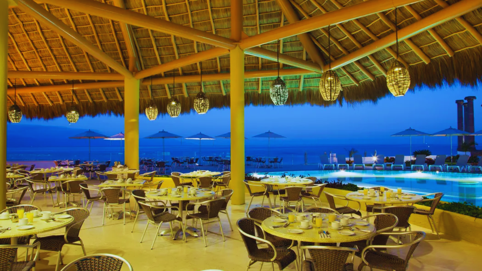 El hotel cuenta con dos bares y cuatro restaurantes que sirven desayuno diariamente y ofrecen una variedad de platos orientales, mediterráneos y de mariscos. El Restaurante Kamakura ofrece una experiencia culinaria japonesa, mientras que el Restaurante Cinque Terre se especializa en cocina italiana. El Restaurante Las Velas, con vistas a la Bahía de Banderas, se destaca por sus mariscos.
